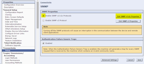 in the SNMP Properties section, tick the Enable SNMP V1/V2c Protocols box;
