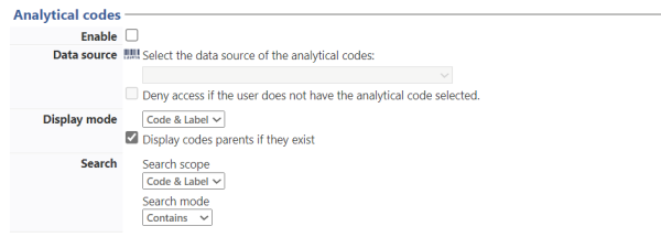 search scope: when the user does not know the code to impute, he can search on the field "Code", on the field "Label" or on both fields simultaneously.