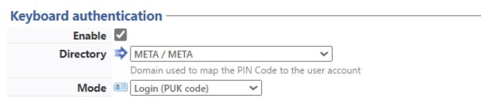 Enable: tick the box (at the section level) to enable user authentication from a physical keyboard or the touch screen one, then set out how this authentication works: