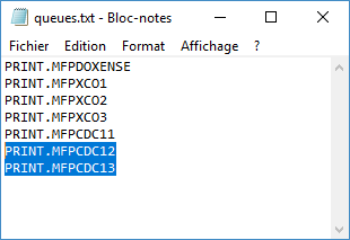 When the Queues.txt file contains only the print queues on which you want to install the WES :