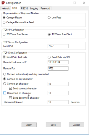 in the Configuration > USBinterface, Representation of Keyboard Newlinesection, keep the default parameters;