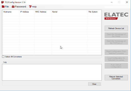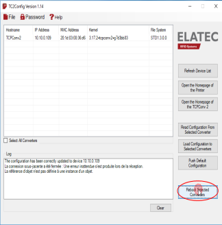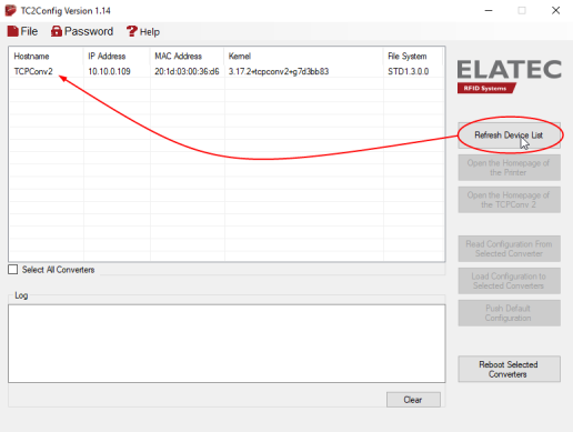 the TCPConv2 devices connected on the network are displayed in the list: