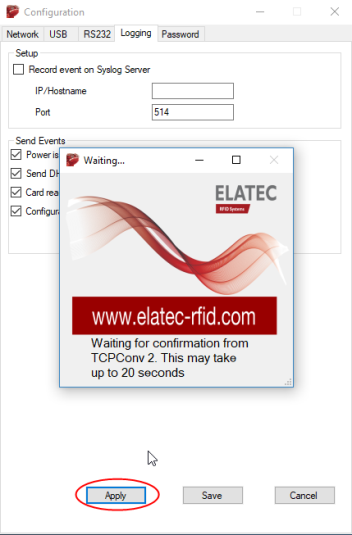 è a dialogue box informs you that the tool is waiting a confirmation from the TCP device: